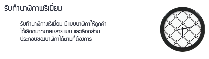 โรงงานของเรารับทำนาฬิกาแขวนผนัง มีแบบนาฬิกาให้ลูกค้าได้เลือกมากมาย ทางเรารับทำนาฬิกาพรีเมี่ยมตามแบบของลูกค้าลูกค้าสามารถเลือกและออกแบบได้ตามที่ต้องการ โดยลูกค้าที่สั่งทำนาฬิกาพรีเมี่ยมกับทางเราสามารถเลือกส่วนประกอบของนาฬิกาแขวนผนังได้ตามที่ต้องการ